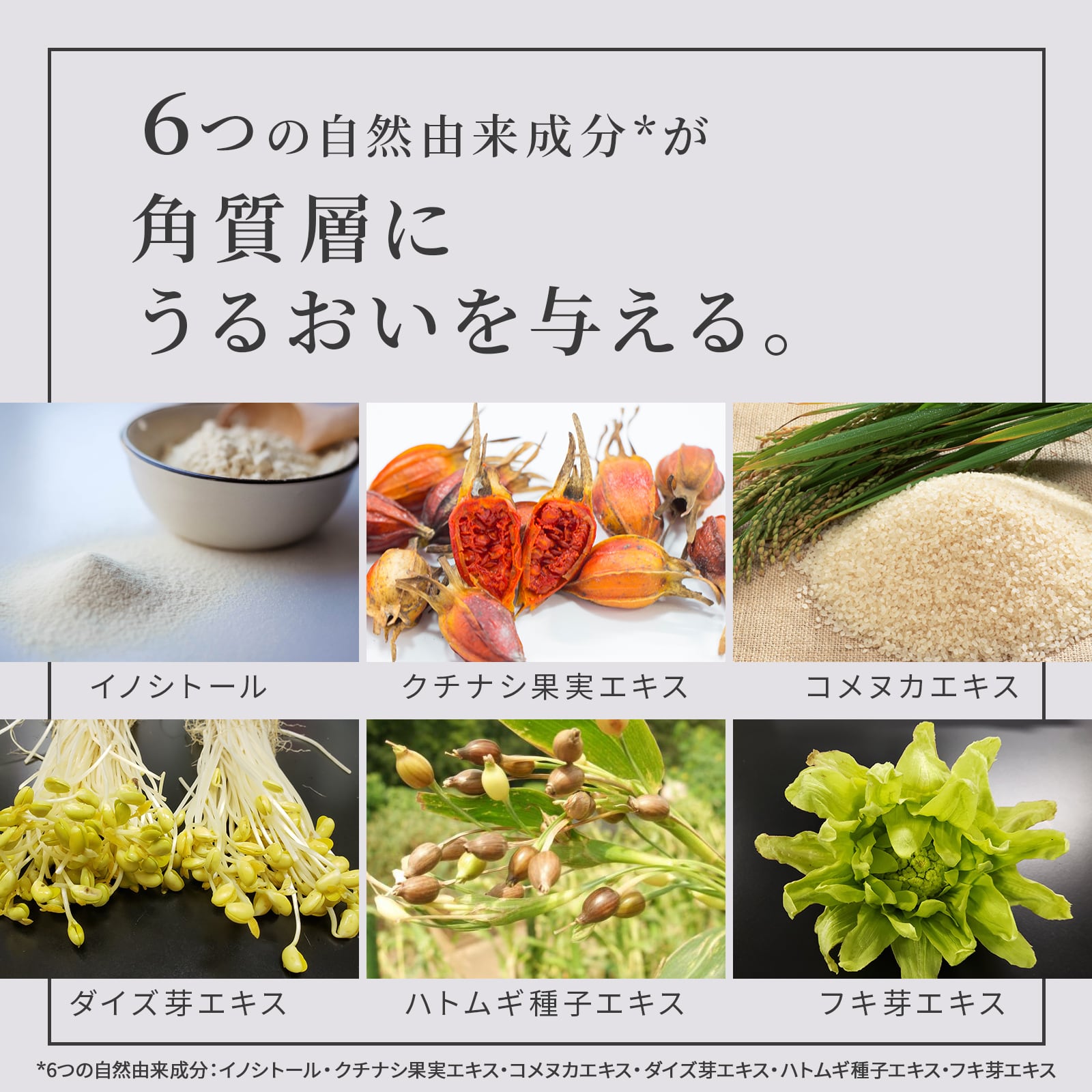 イノシトール、クチナシ果実エキス、コメヌカエキス、ダイズ芽エキス、ハトムギ種子エキス、フキ芽エキス